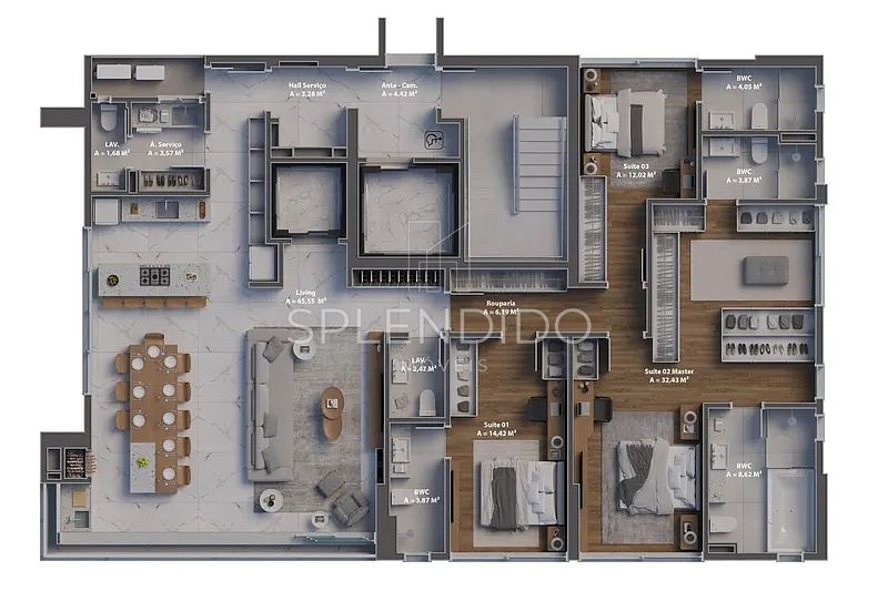 • Living integrado entre sala de estar e sala de jantar