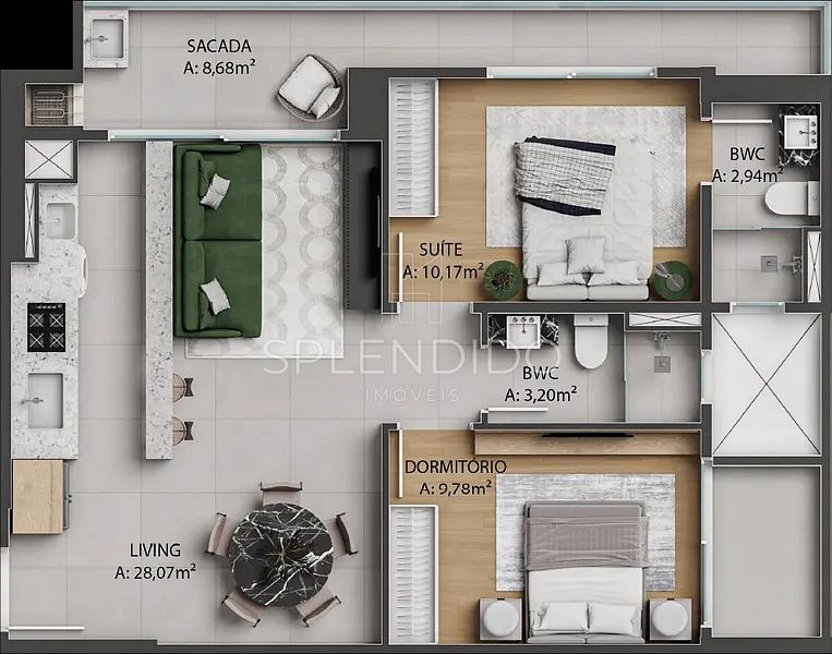 • 1 Suíte + 1 Dormitório