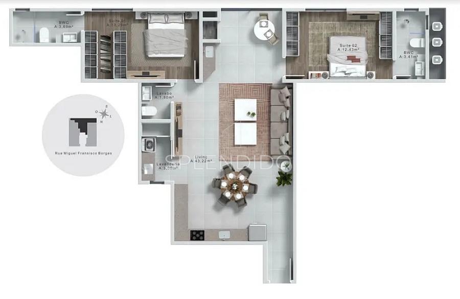 3 dormitórios (2 suítes)