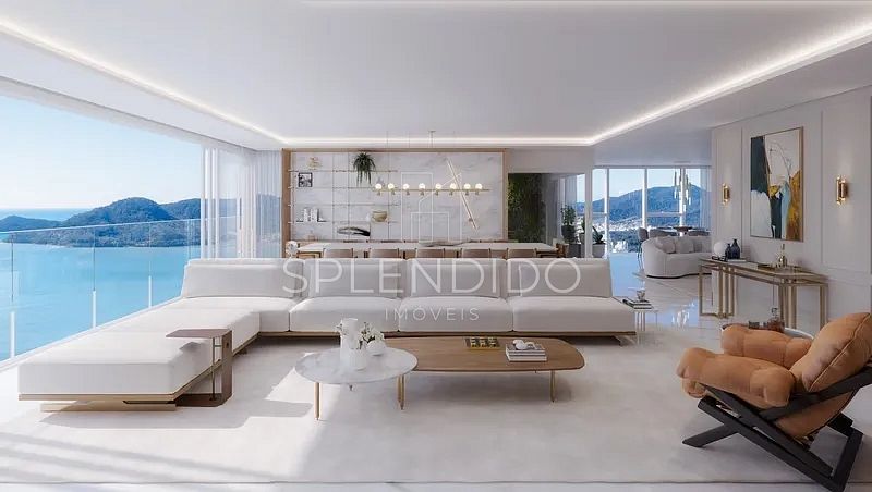 • Amplo living integrado de frente para o mar