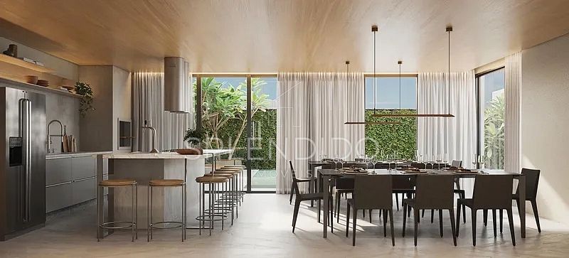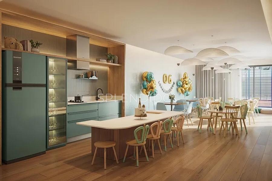 • Cozinha no formato ilha, integrada com sala de estar e sala de jantar