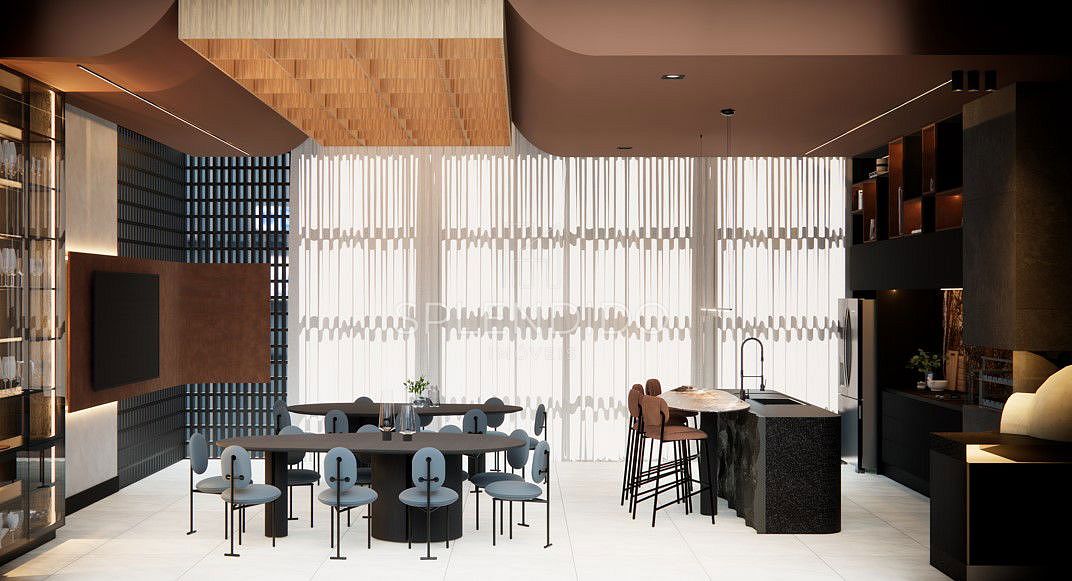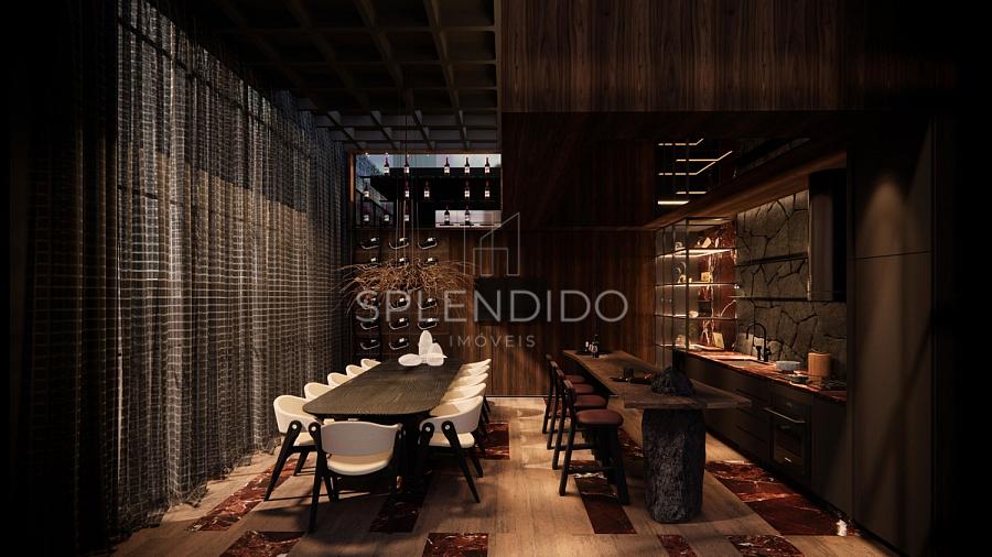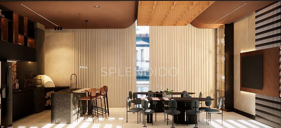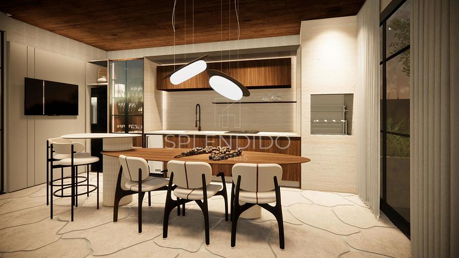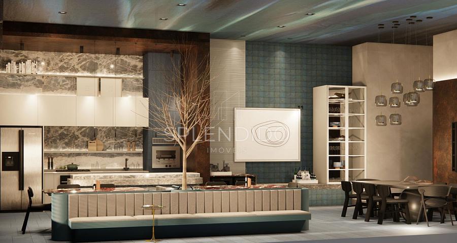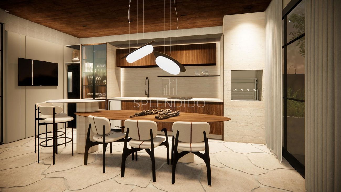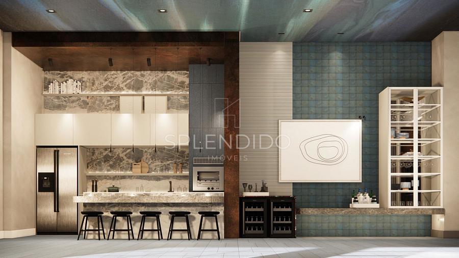 • Cozinha no formato ilha integrada com sala de estar e sala de jantar