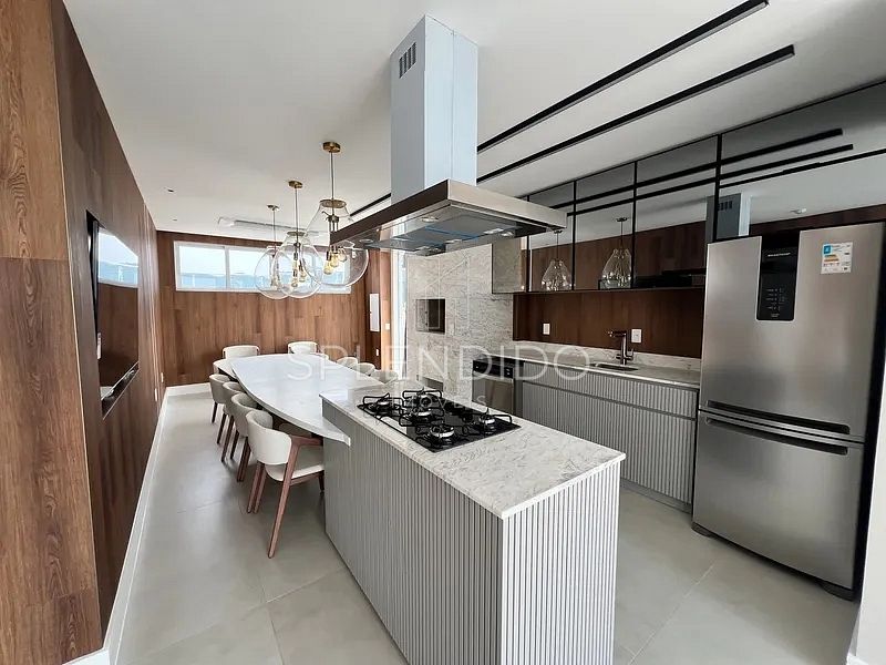 • Cozinha aberta, no estilo gourmet